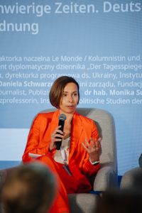 W przeciwieństwie do możliwości finansowych i organizacyjnych Unii Europejskiej, wątpliwości nie wzbudziła teza o kluczowej roli współpracy między Polską i Niemcami oraz o jej roli w kontekście rosyjskiej agresji. Pomimo trudności towarzyszących partnerstwu dwóch sąsiadujących państw oraz obaw o jego przyszłość, które pojawiły się po wyborze nowego prezydenta Polski, relacje polsko-niemieckie oceniane są z optymizmem. Bliskie stosunki udaje się bowiem utrzymać dzięki dobrze rozwiniętym relacjom gospodarczym oraz silnemu zaangażowaniu w rozszerzenie współprac lokalnych. W obliczu wojny w Ukrainie ważne jest jednak, według Danieli Schwarzer, by zdefiniować wspólne, polsko-niemieckie działania, wyznaczyć wspólne cele i kierunek, którego oba kraje będą przestrzegać w dalekiej perspektywie. Równie istotne jest, aby Polska kontynuowała swoją rolę jako tłumacza, łącznika pomiędzy Ukrainą a Europą Zachodnią, a relacja Polski z Niemcami wpłynęła pozytywnie na sytuację w Ukrainie.