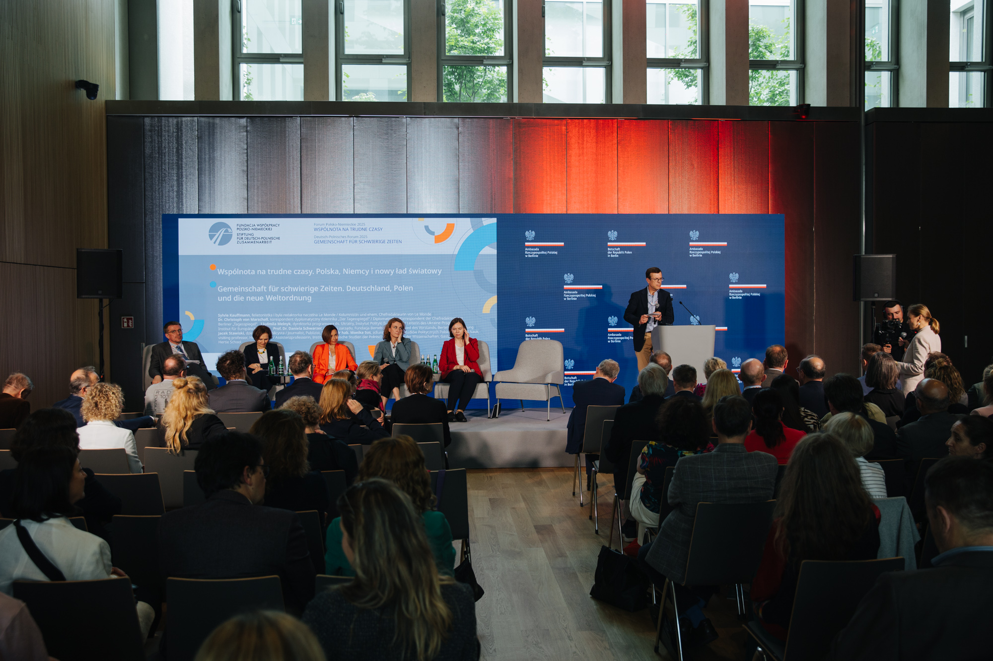 W kończącej obrady Forum Polsko-Niemieckiego debacie plenarnej wzięły udział cztery specjalistki z zakresu studiów politycznych: Sylvie Kauffmann, dziennikarka z francuskiego „Le Monde”, Ljudmila Melnyk, dyrektorka programowa ds. Ukrainy w berlińskim Instytucie Polityki Europejskiej, Daniela Schwarzer z Fundacji Bertelsmanna oraz Monika Sus, politolożka pracująca w Instytucie Studiów Politycznych Polskiej Akademii Nauk i w berlińskiej Hertie School. Dyskusję poprowadzili Christoph von Marschall, niemiecki dziennikarz reprezentujący „Der Tagesspiegel” oraz Jacek Stawiski z TVN24.