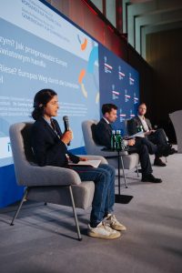 W tym kontekście, Samina Sultan podkreśliła, że Polska zyskuje na znaczeniu w Europie, nie tylko jako rosnący rynek zbytu, ale również jako strategiczny partner gospodarczy. Zdaniem panelistki, Europa musi uniezależnić się od surowców i technologii zagranicznych, co czyni Polskę szczególnie wartościowym krajem. Staje się ona pomostem między Europą wschodnią a zachodnią. Zawdzięcza to, nie tylko położeniu geograficznemu, ale również dużemu potencjałowi technologicznemu.