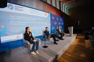 Jednocześnie, paneliści nie unikali trudnych pytań – Jan Strzelecki podkreślił, że to szok energetyczny, wywołany rosyjską wojną w Ukrainie, jest najpoważniejszym kryzysem dla europejskiej gospodarki od dekad. Uzależnienie od rosyjskiego gazu i ropy uderzyło szczególnie mocno w przemysł energochłonny w całej Europie. W konsekwencji powoduje utratę konkurencyjności europejskich produktów na tle tych z Chin, których wytworzenie jest tańsze ze względu na niższe koszty energii oraz łagodne regulacje np. w zakresie prawa pracy panującego w tym kraju.